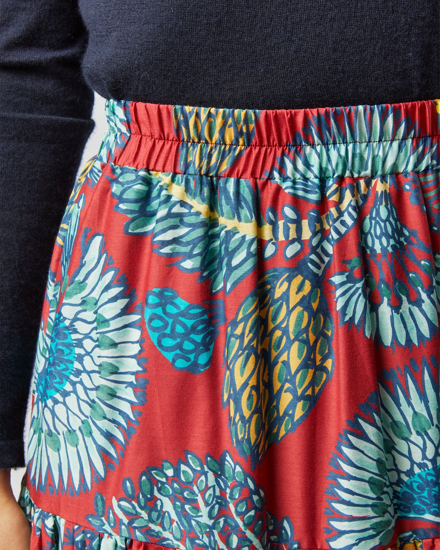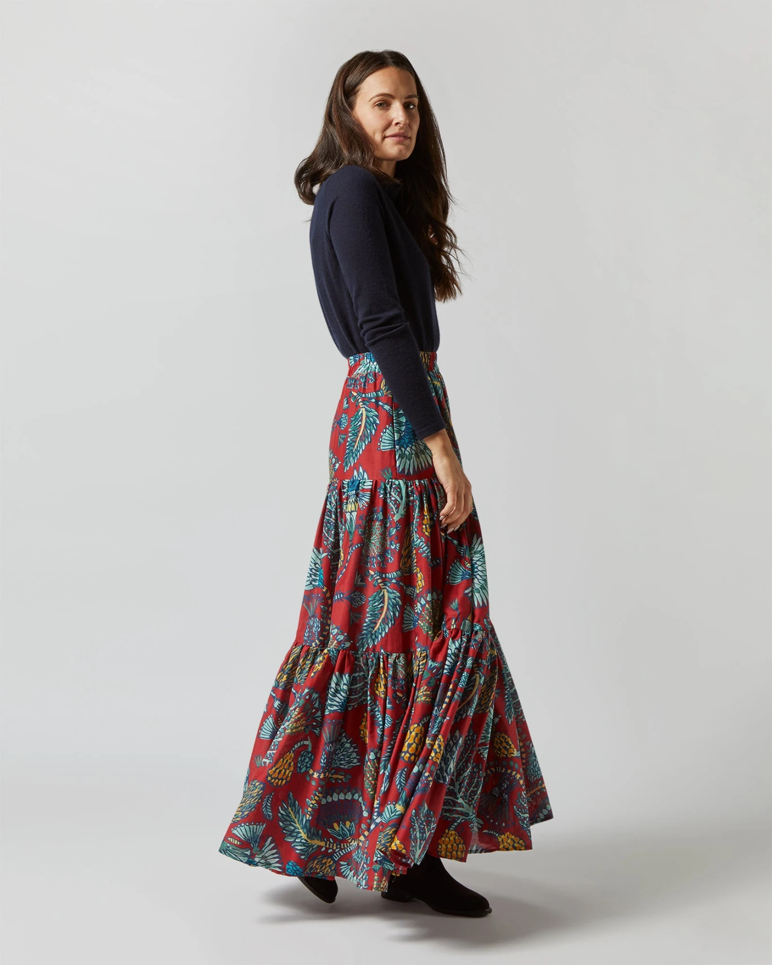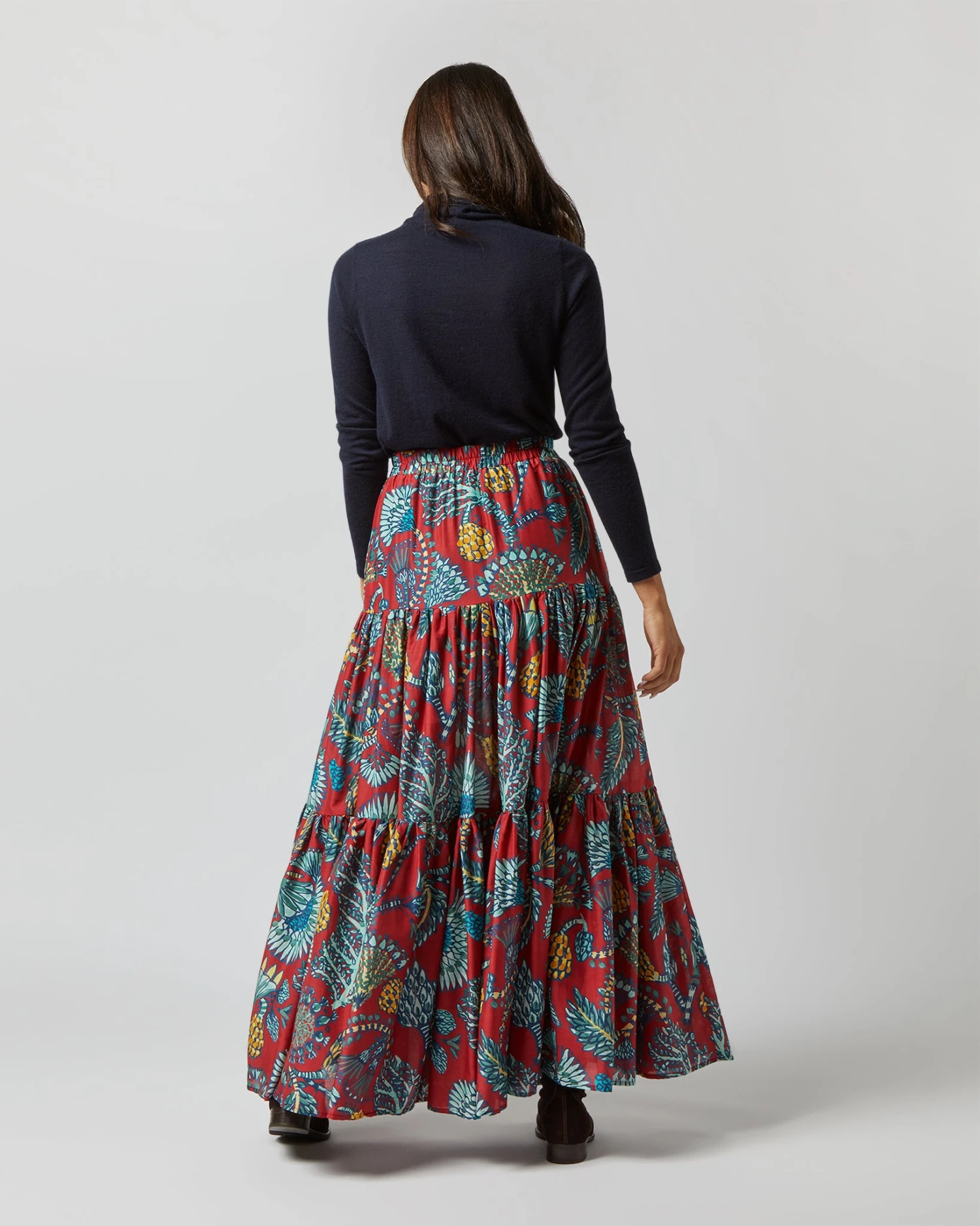Milan-based La DoubleJ makes party-ready skirts and dresses in reissued vintage fabrics, “distilled through a lens of pure joy, eye-popping print and love of all things maximal.” Sounds about right! This is a voluminous skirt made of silk voile from Lake Como, and it can go from casual to dressed-up in a second. In addition to the traditional skirt styling, you can wear it up high as a strapless maxidress.