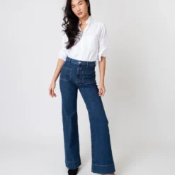 When we first started making jeans, Ann’s favorite cropped flare shape was the second order of business after the classic straight-leg silhouette. No high-tech fabric composition, no fussy back pocket stitching, no magic seam placement… just a classic pair of jeans that makes you look like a better, more pulled-together version of yourself. Each pair is made in Los Angeles (just like our men’s jeans) out of stretch Cone Mills denim in a perfectly faded, seven-years-worn-in shade of blue.