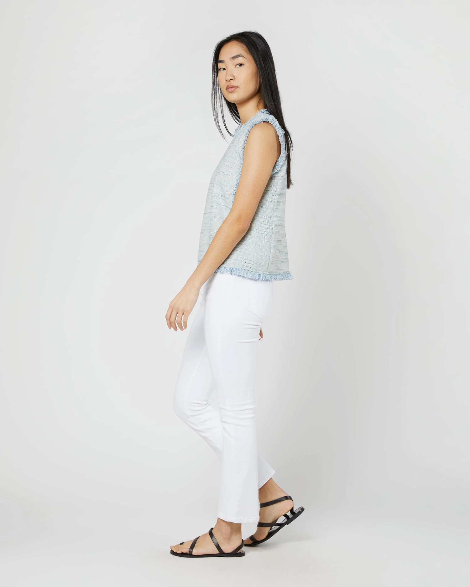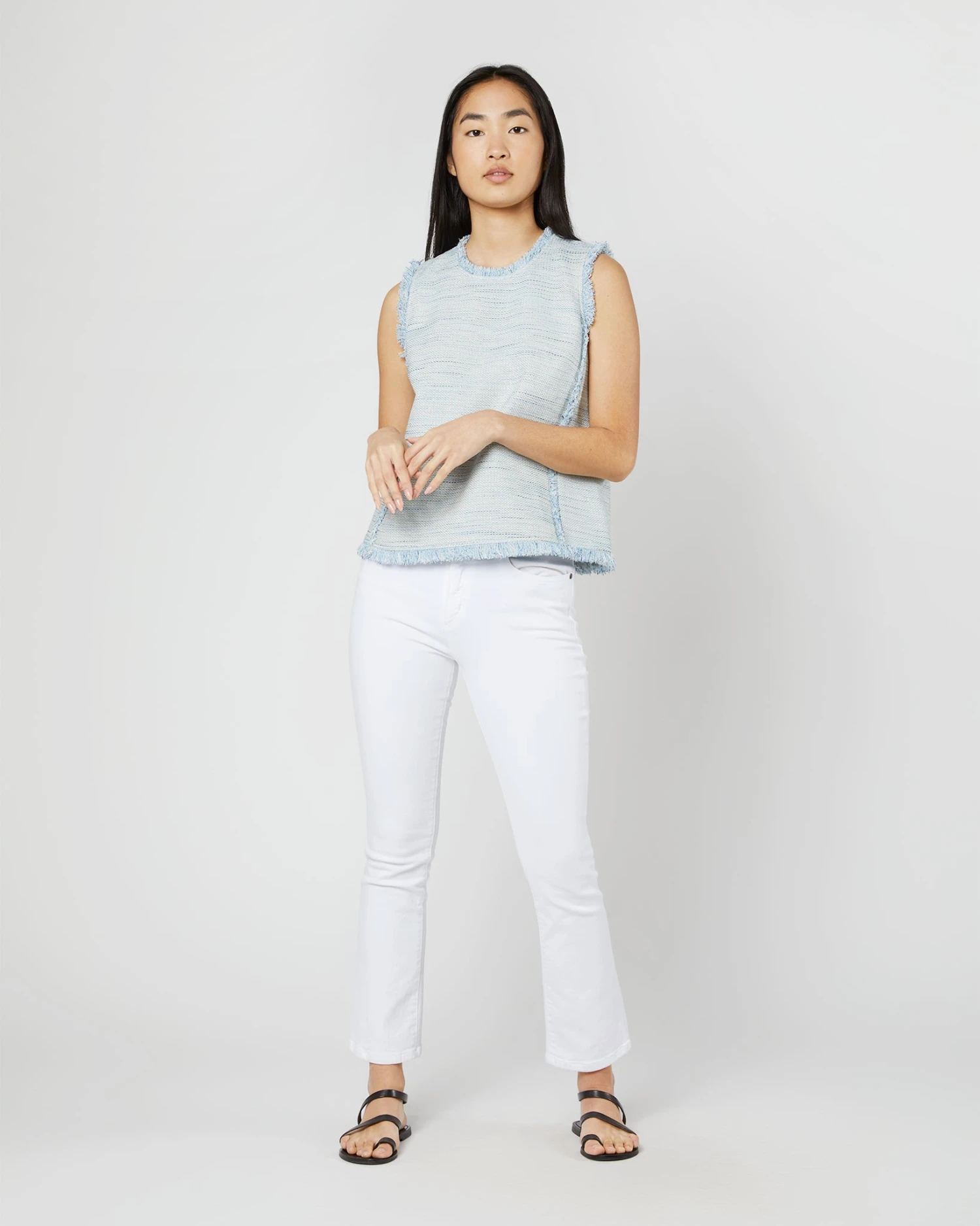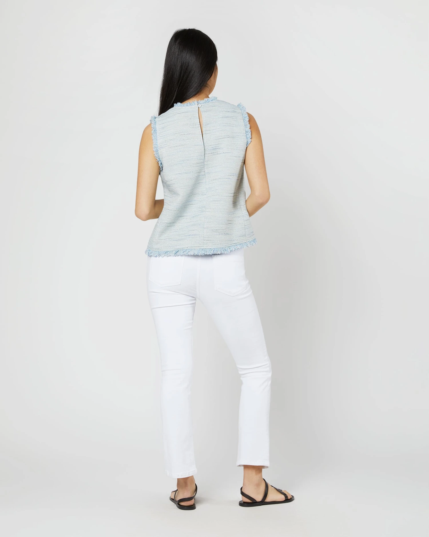 Your next day-to-night, goes-with-everything top, made from a lightweight tweed in the prettiest shade of sky blue. A perfect companion to your favorite white jeans.