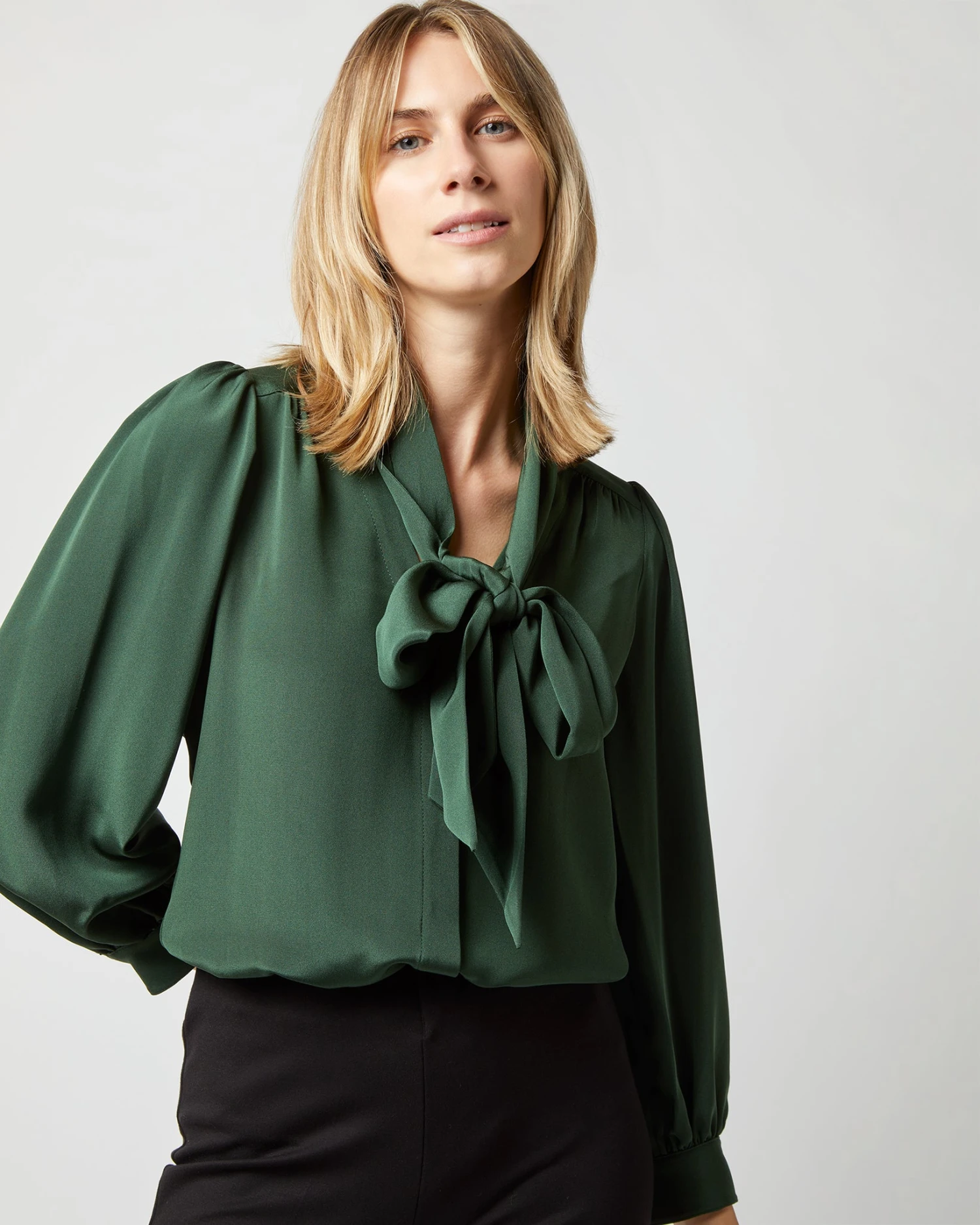Helene Tie-Neck Blouse In Hunter Silk Crepe De Chine