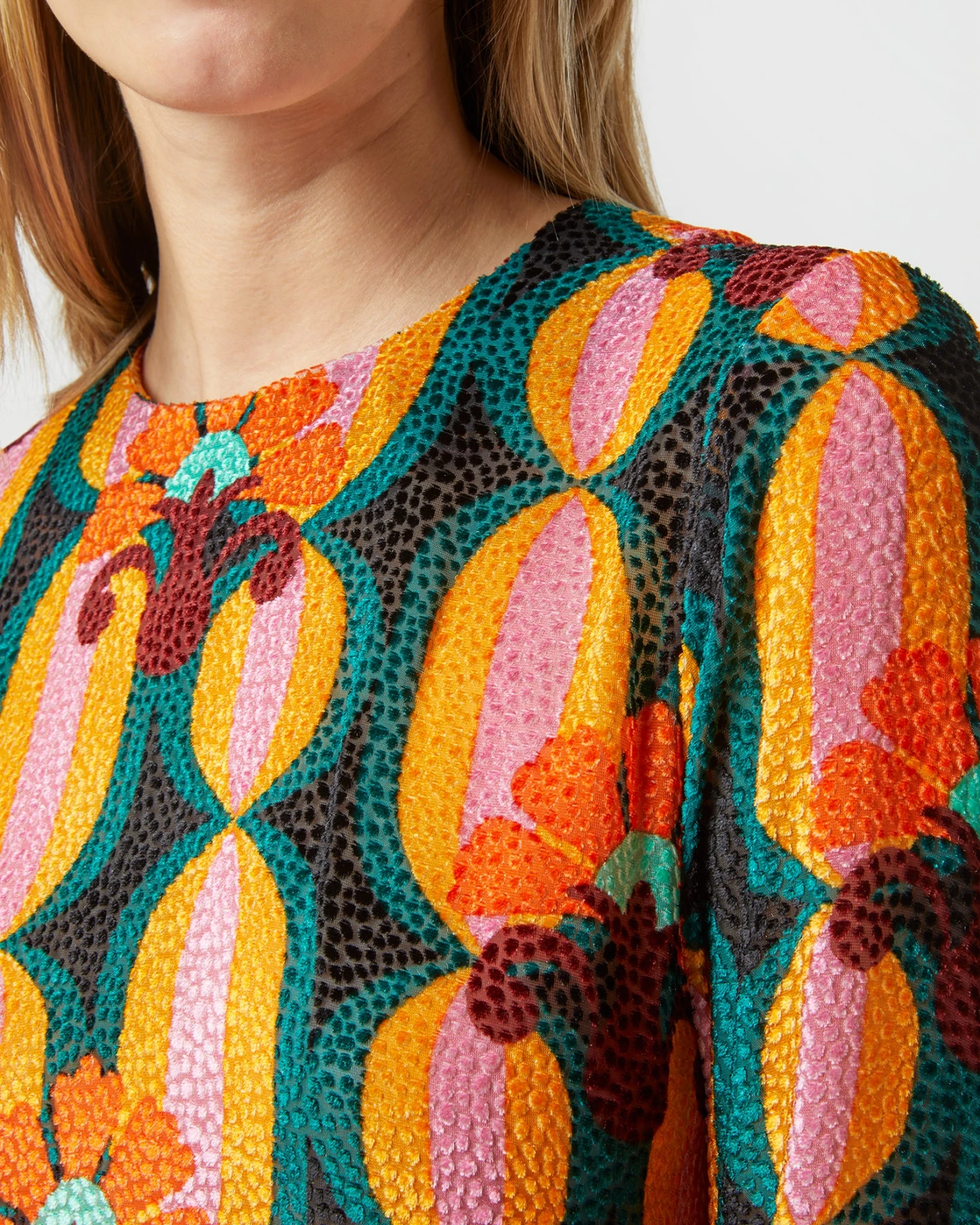 Long Sleeve Swing Dress In Arcturus Blue Petrol Velvet Devoré