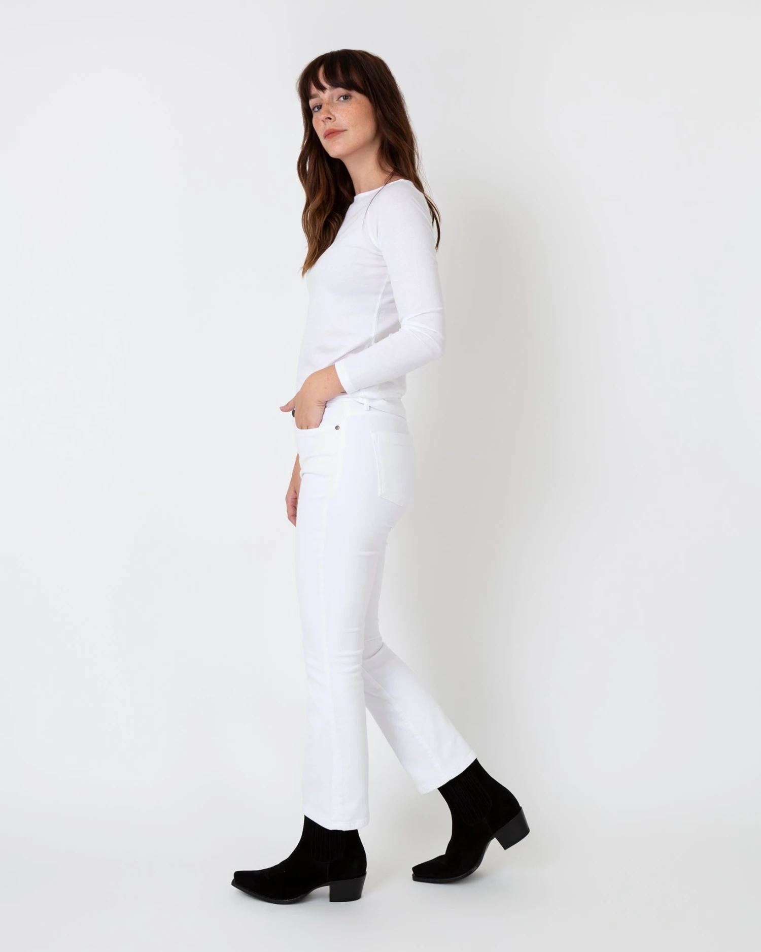 Long-Sleeved Boatneck Tee In White Pima Cotton