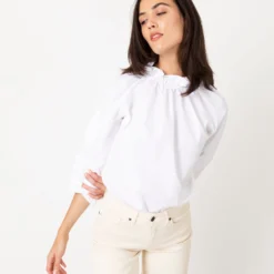 Margherita Dress In Borboni Placed Bianco Cotton Popeline Placée
