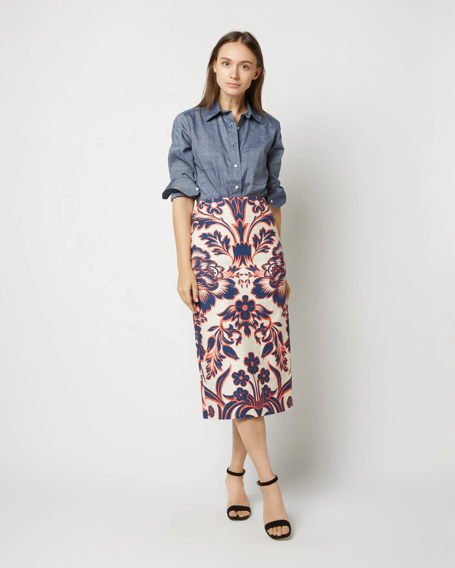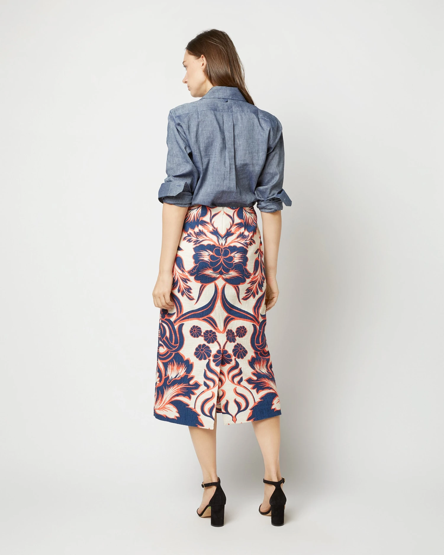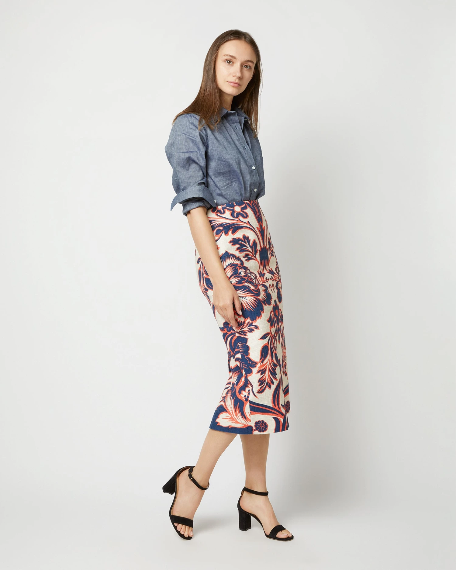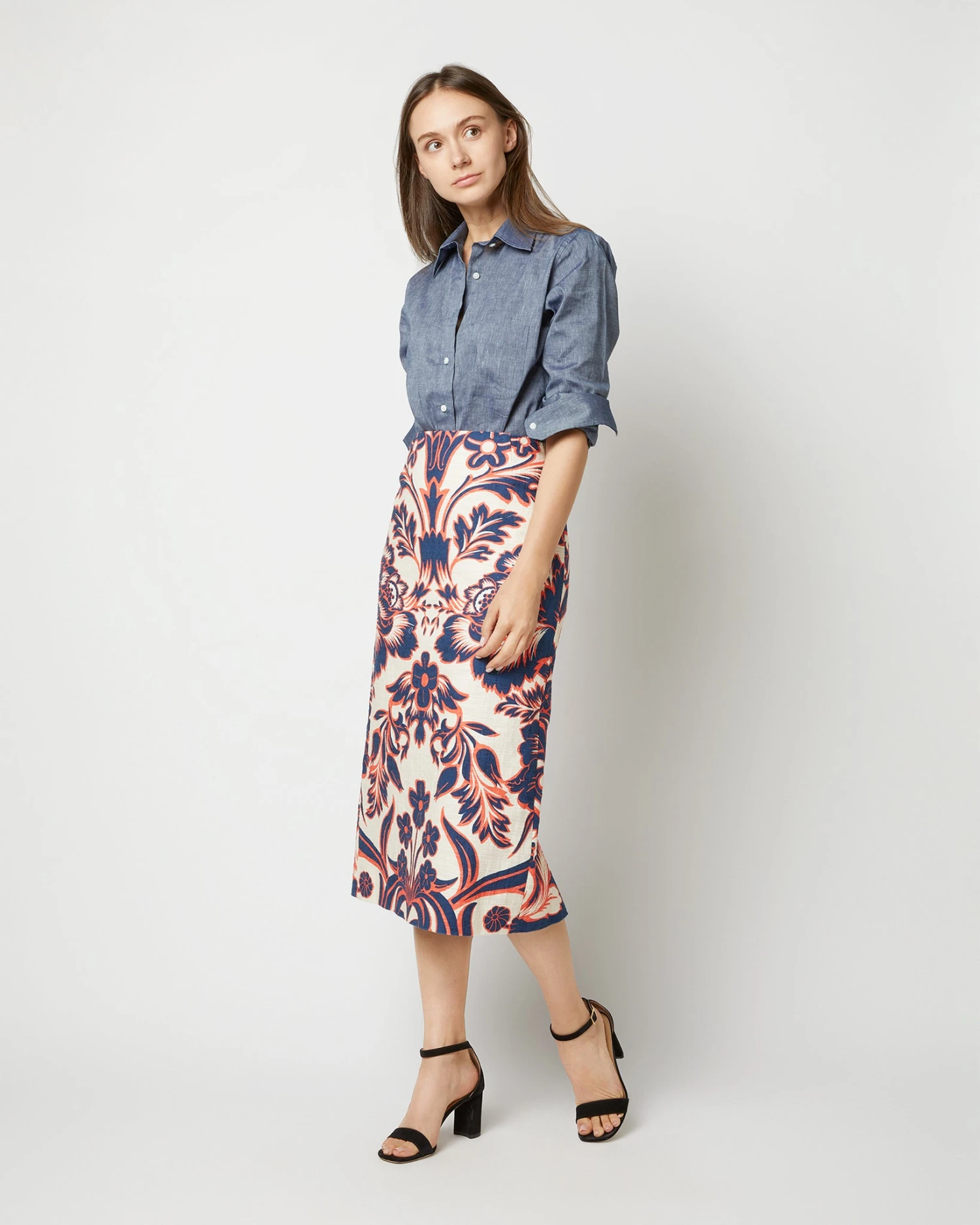 Milan-based La DoubleJ makes party-ready skirts and dresses in reissued vintage fabrics, “distilled through a lens of pure joy, eye-popping print and love of all things maximal.” Sounds about right! This is a pull-on pencil skirt made up in a shot cotton that looks and feels like linen. Dress it up, dress it down, or go head-to-toe and pair it with the coordinating (but intentionally mismatched) shirt.