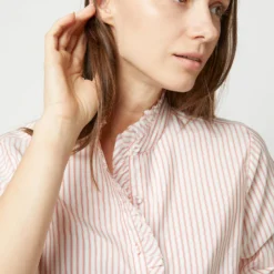 Frill Shirt In Dark Olive Awning Stripe Cotton