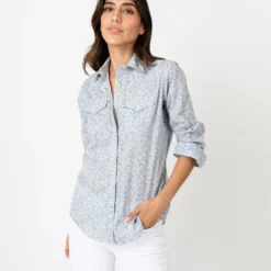 Western Shirt In Steel Blue Multi Hannah Rose Liberty Fabric
