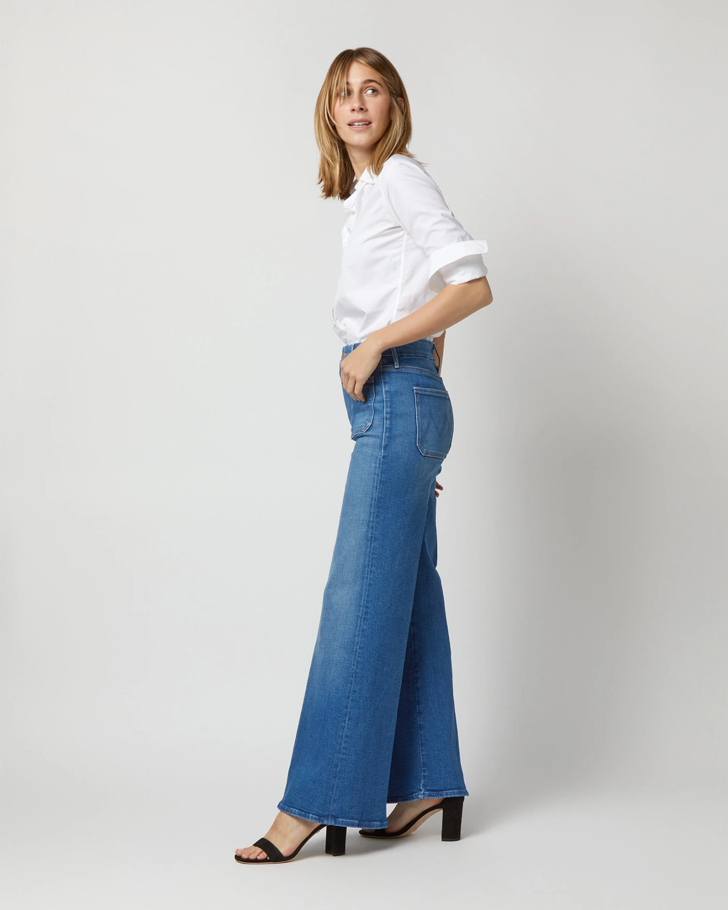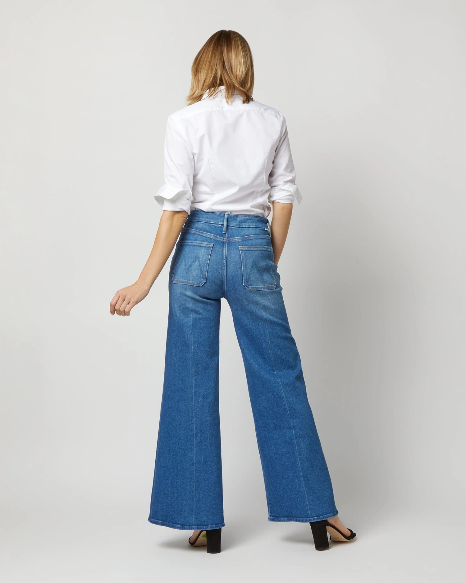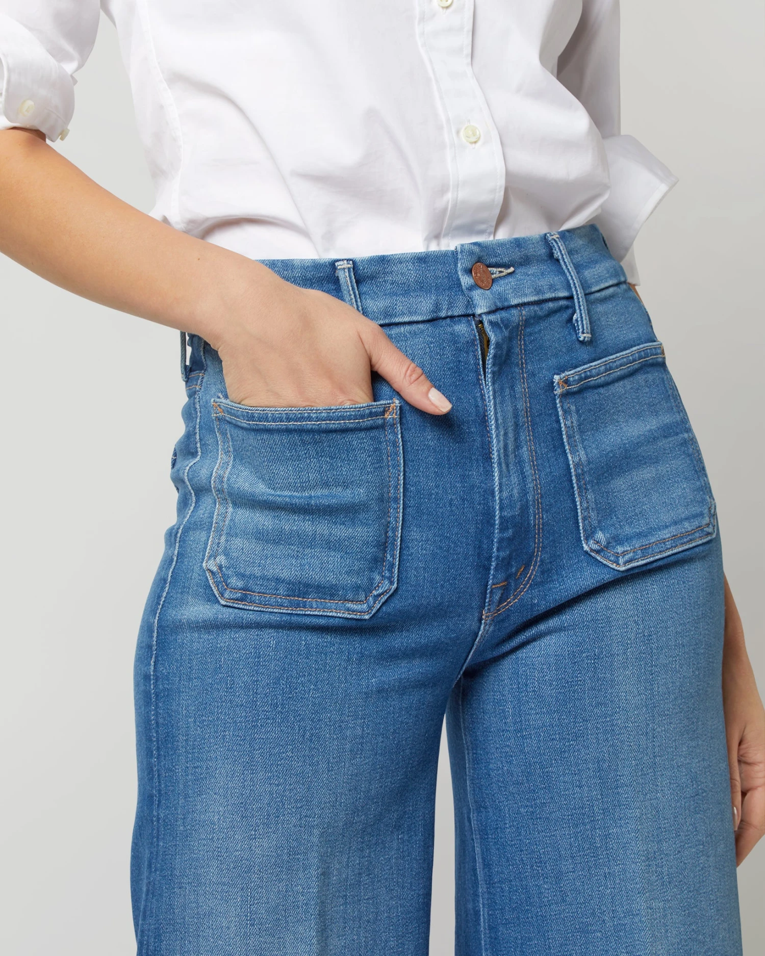 LA-based MOTHER makes the softest, stretchiest jeans around — and they all have clever, memorable names to boot. Like the Roller: a 70s-inspired wide-leg shape with a super-high waist, patch pockets, and a full-length, 31-inch inseam for longer legs. Eager Beaver is a recycled stretch denim blend with subtle whiskering and fading at the knee.