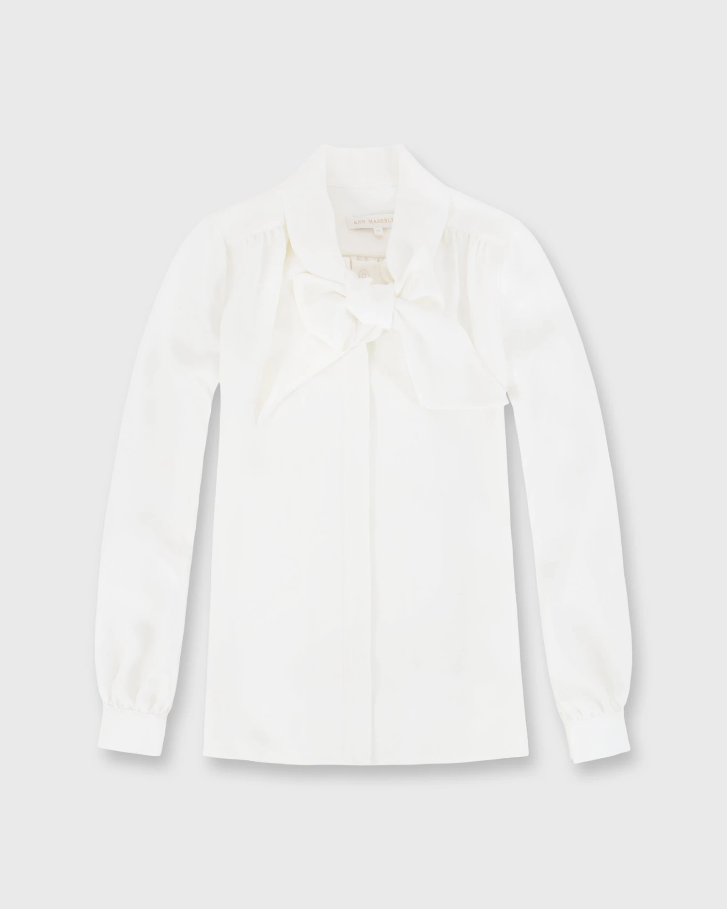 Tie-Neck Blouse In Ivory Silk Crepe De Chine