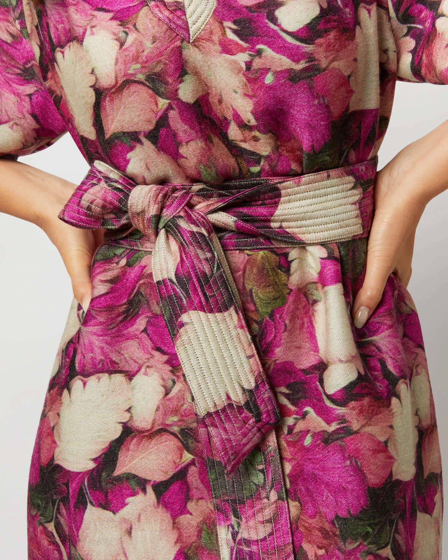 Trapunto Blouson-Sleeve Dress In Berry/Multi Winter Garden Venetian